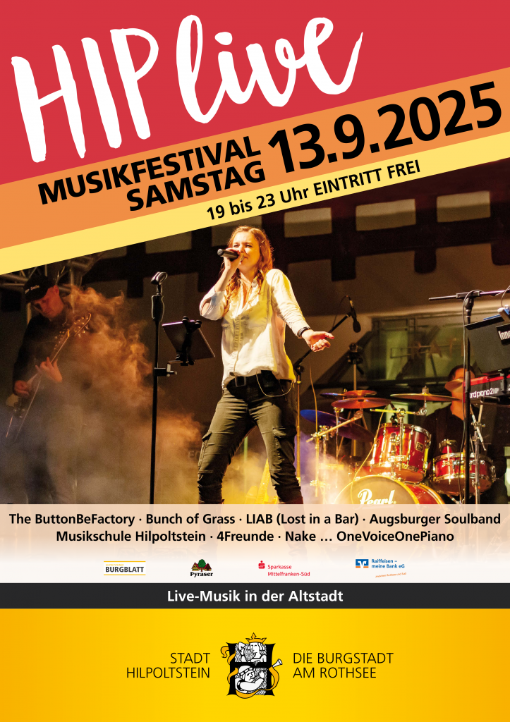 Samstag, 13.09.2025HIPlive Musikfestival in Hilpoltstein