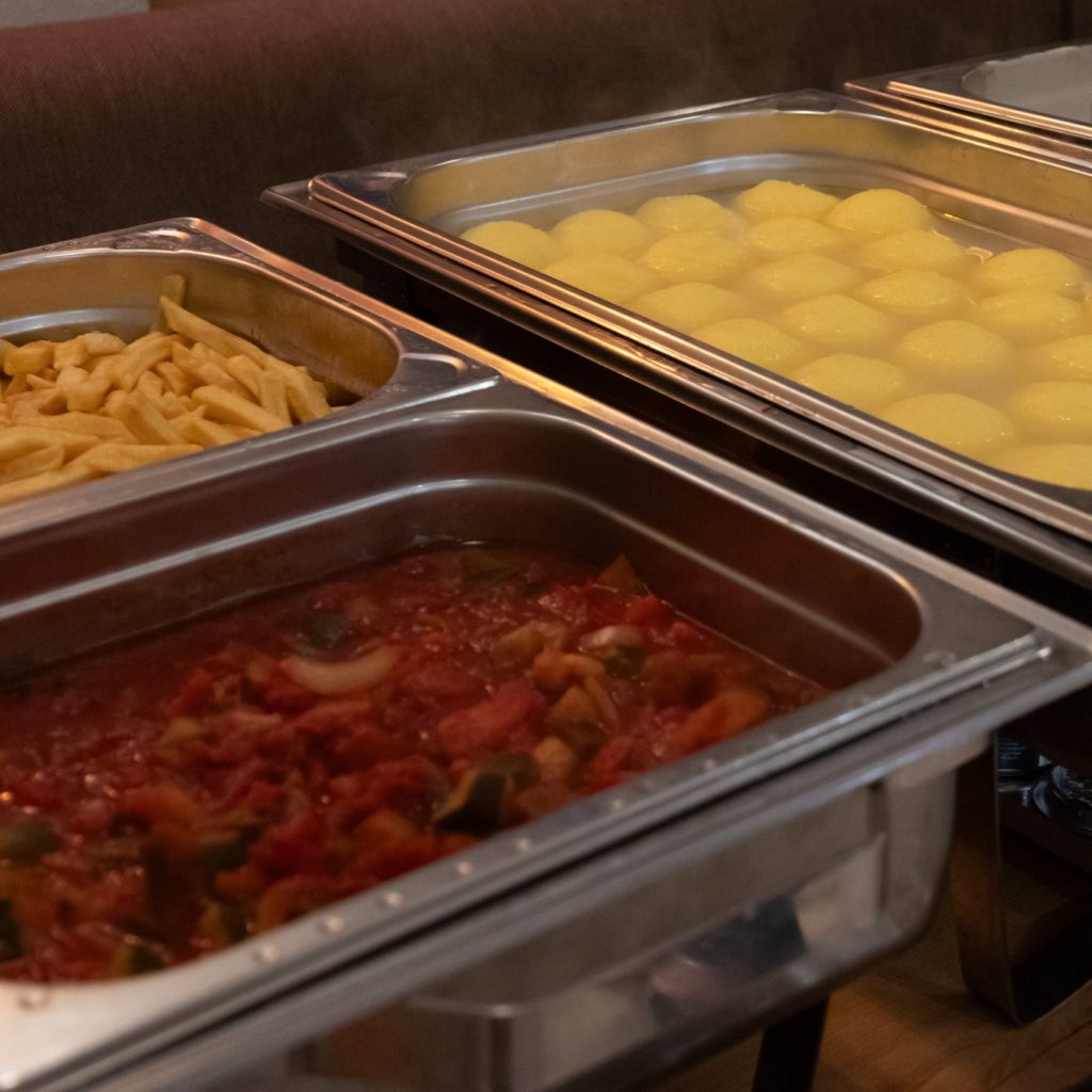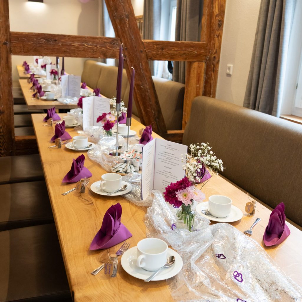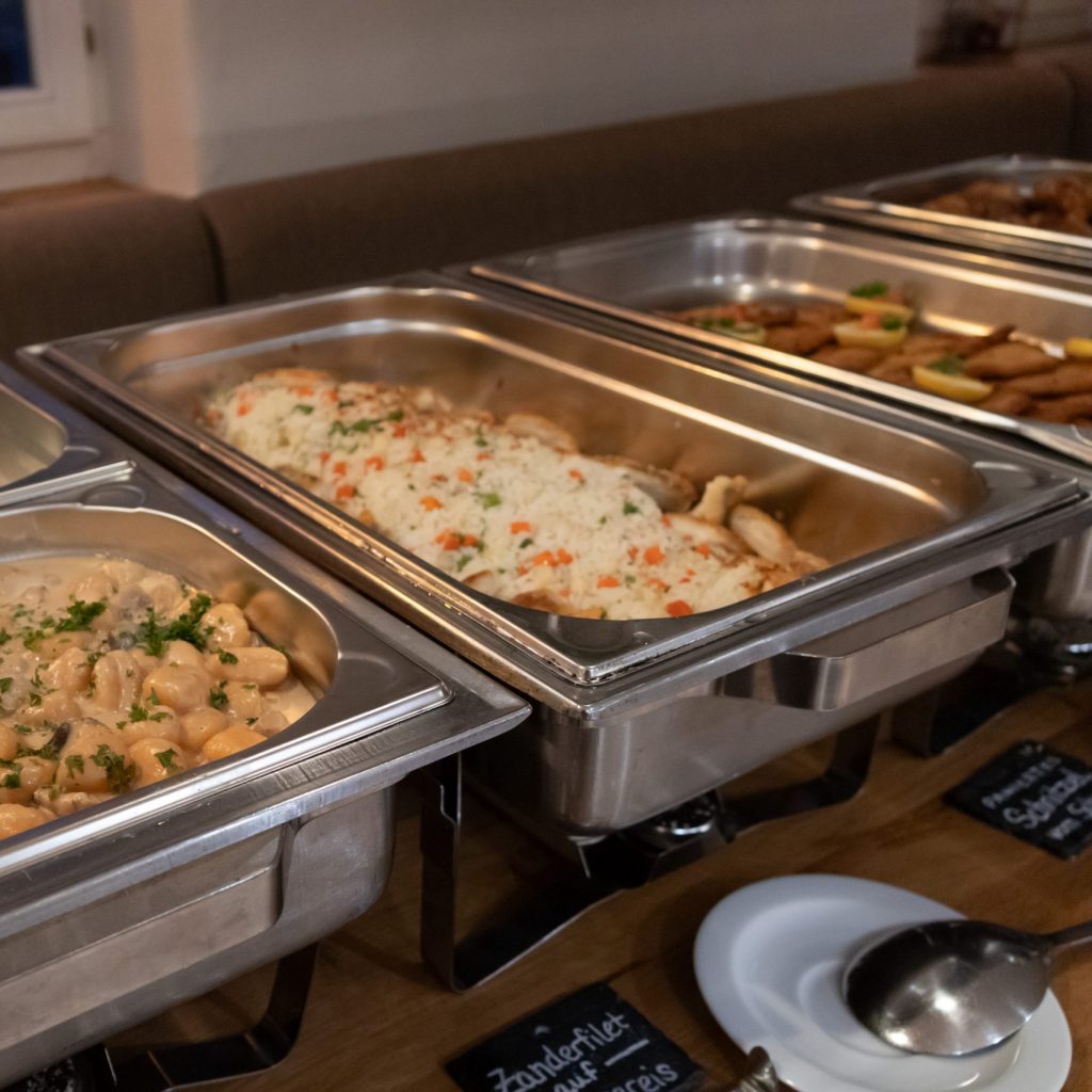 Insgesamt bietet der Innenraum der Gartenlaube Platz für 60 Personen. Im Außenbereich haben wir Sitzmöglichkeiten für ca. 30 Personen.
